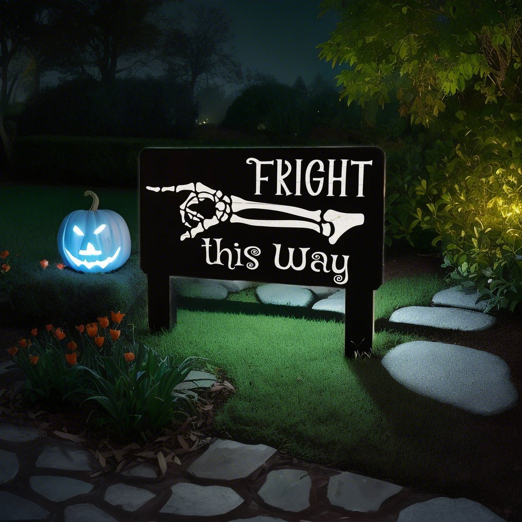 🎉👻New Halloween Fright this Way Metal Yard Sign