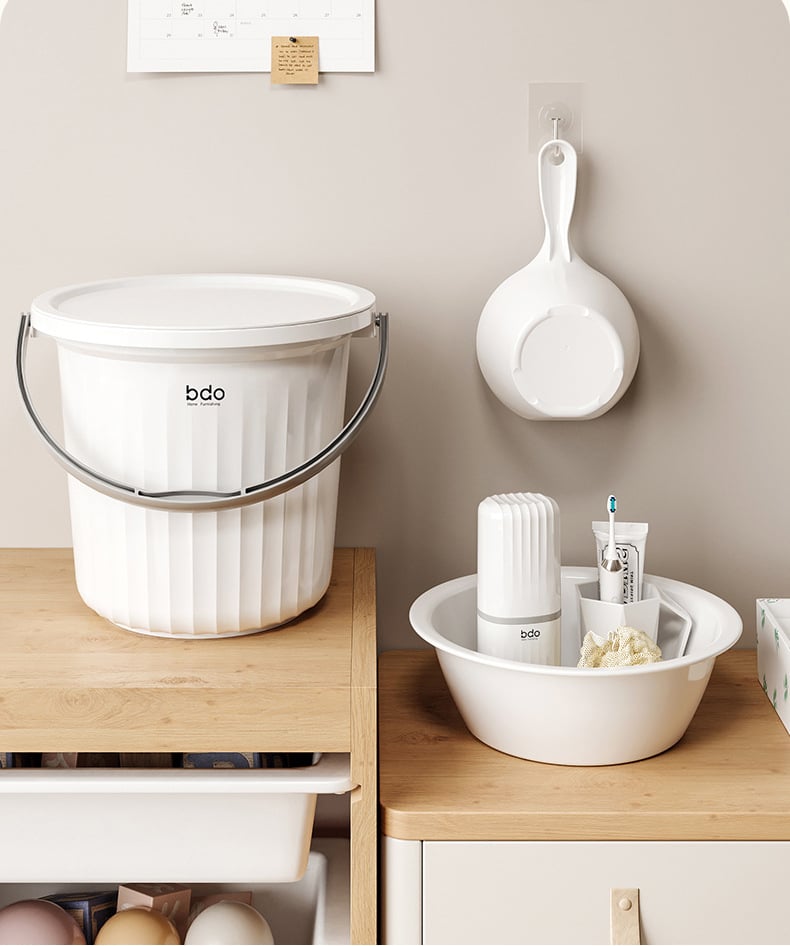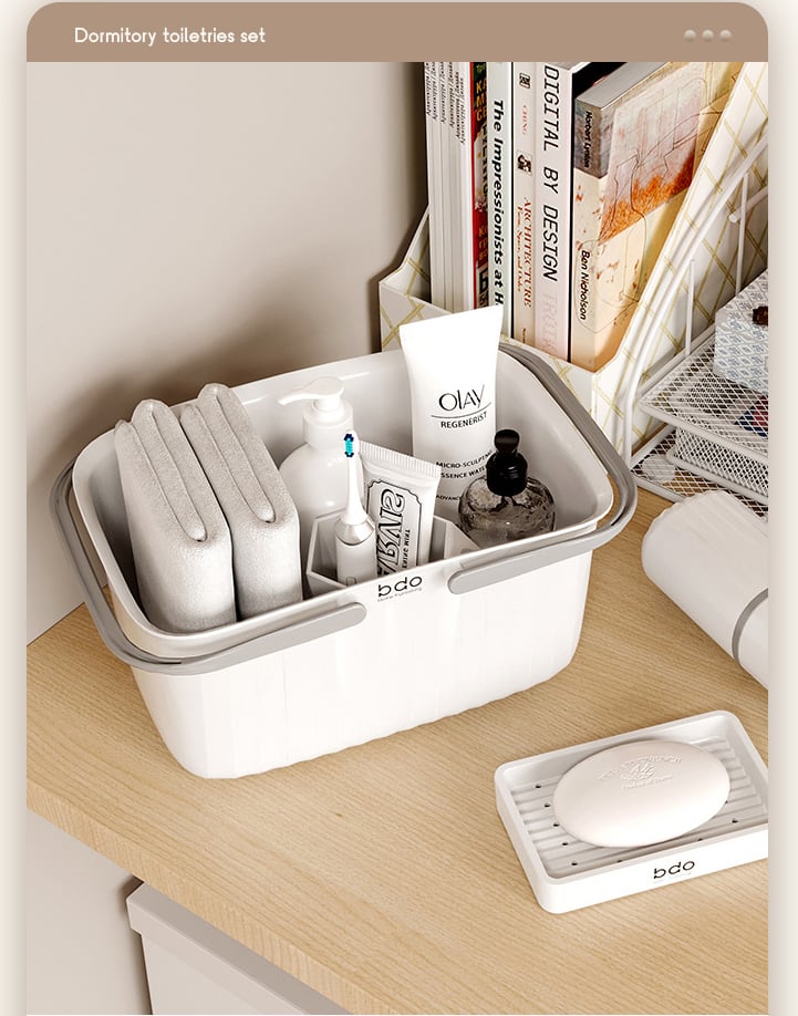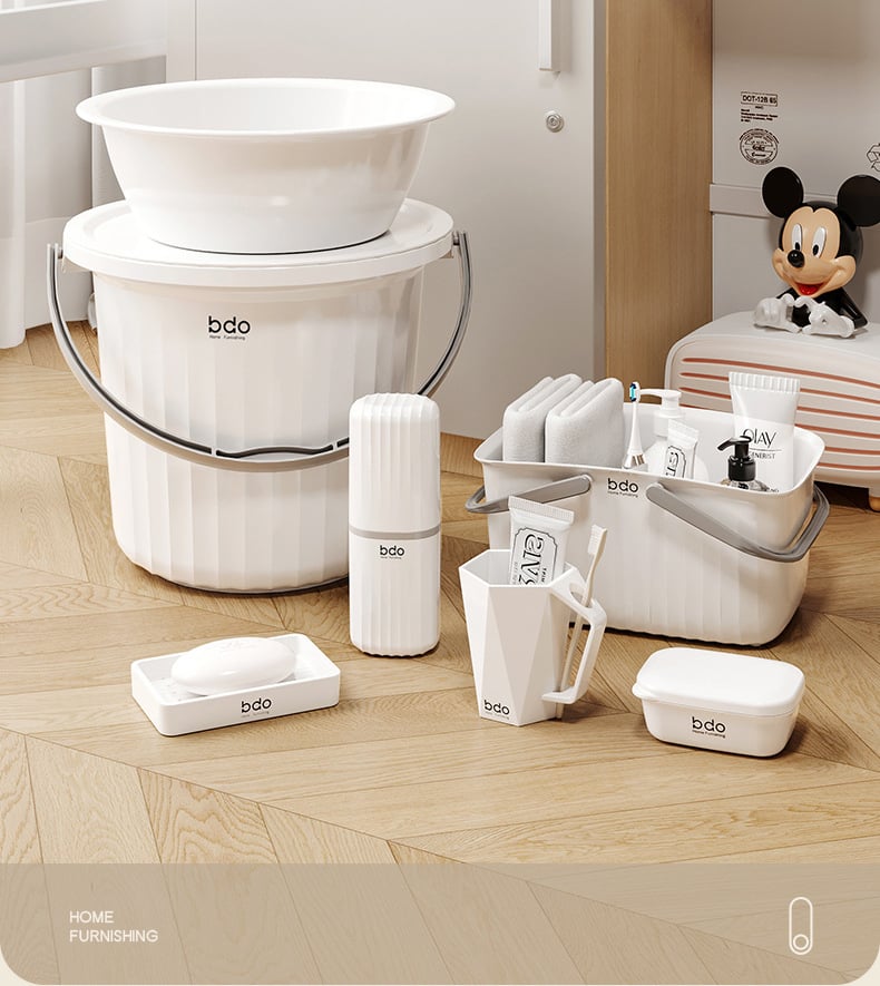Multi-functional Washroom Set | Fewer Worries |The set includes five essential items such as a washbasin, bucket, and bath basket to meet your various washing needs in dormitory life.