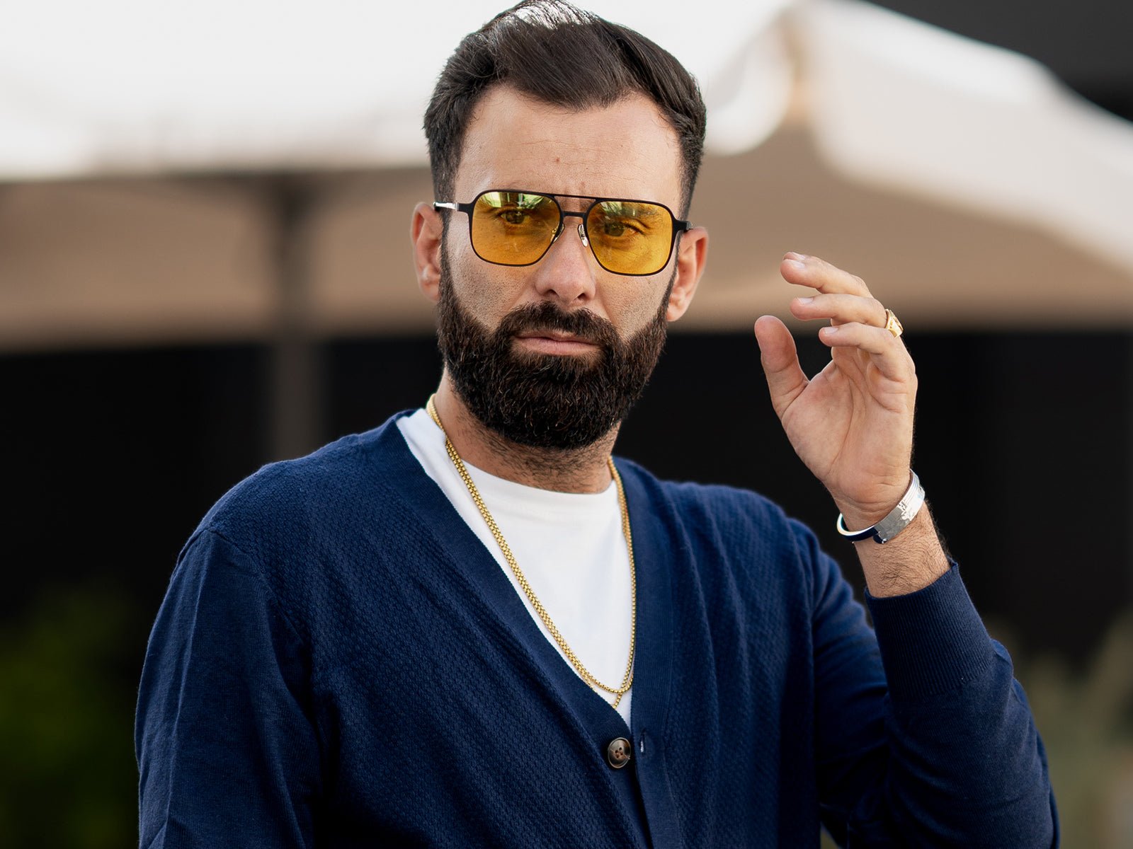 - Glasses style: square frame