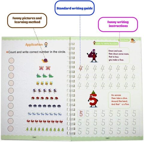 • Package includes :  Alphabet+Number+Math+Drawing books+1 pen+5 refills+1 pen holder. This Magic Calligraphy Copybook Set is the perfect gift for kids ages 3-7 years old.