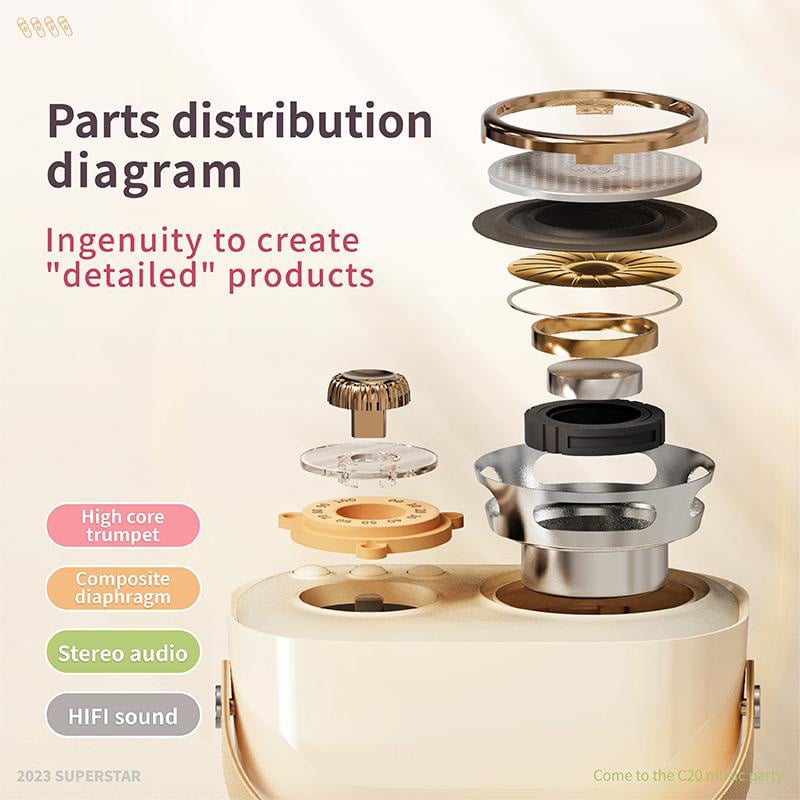 【Full, Clear-crystal Sound】Equipped with a 5W speaker and a bass diaphragm, our Bluetooth speaker delivers rich and clear-crystal sound with deep bass, immersing you in your music. The microphone ensures high fidelity while effectively eliminating noise and interference. (Note: To prevent howling sound, 1. avoid placing the microphone and speaker too close to each other when the speaker volume is loud. 2. do not position the microphone's pickup port near the speaker's horn.)