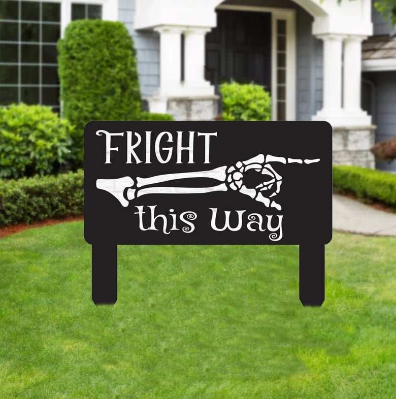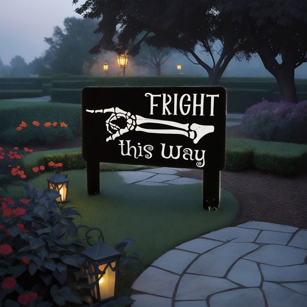 🎉👻New Halloween Fright this Way Metal Yard Sign