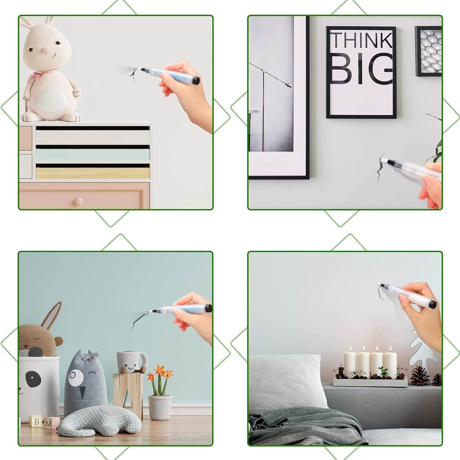 • 【MULTIFUNCTIONAL PAINT REPAIRER】- Our tip of touch up paint pen is a soft brush, perfect for helping you quickly repair scuffs and scratches, chips, or nail holes on walls, trim, ceiling, and doors. Compared with ordinary paint brushes or paint rollers, it is more convenient to use in narrow spaces, without worrying about paint splatters or drips.